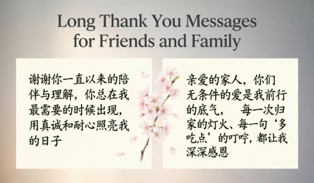 Long thank you messages allow you to express emotions deeply. Using heartfelt, emotional, and inspirational messages helps convey gratitude for support, encouragement, mentorship, and acts of service with sincerity and love.