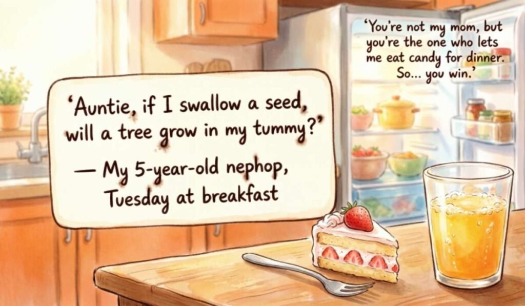- “Nephew, you steal snacks and hearts, all in one magical day.”