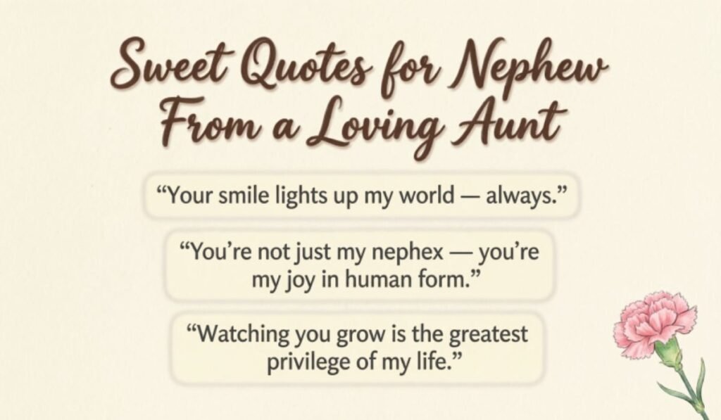 Family bonds are precious, but the connection between an aunt and her nephew is truly one-of-a-kind. Nephew Quotes from Aunt capture that special love in the sweetest way. An aunt laughs with her nephew, guides him, and fills his life with care. These quotes celebrate every joyful and emotional moment they share.Whether you’re looking for funny nephew quotes or touching emotional aunt to nephew quotes, there’s something for every occasion.