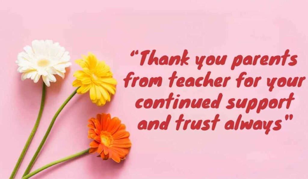 Strong communication builds trust between home and school. That is why Thank You Notes to Parents From Teacher are so important every year. Many families also send thank you teacher messages from parents and a kind thank you message for teachers from parents. This mutual appreciation creates a positive learning space. Thank You Notes to Parents From Teacher keep this partnership strong and lasting.