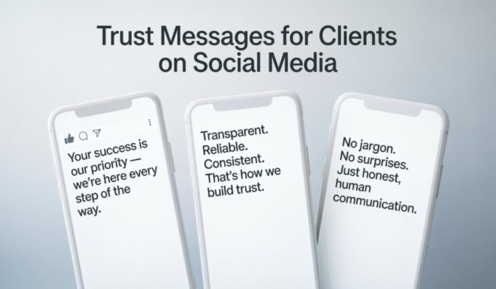 Short, meaningful Trust Messages for Clients build instant client confidence. They promote client loyalty, engagement, and professional partnerships. Quick, clear, and authentic messages maintain transparency, consistency, and communication, enhancing client satisfaction and long-term relationships.